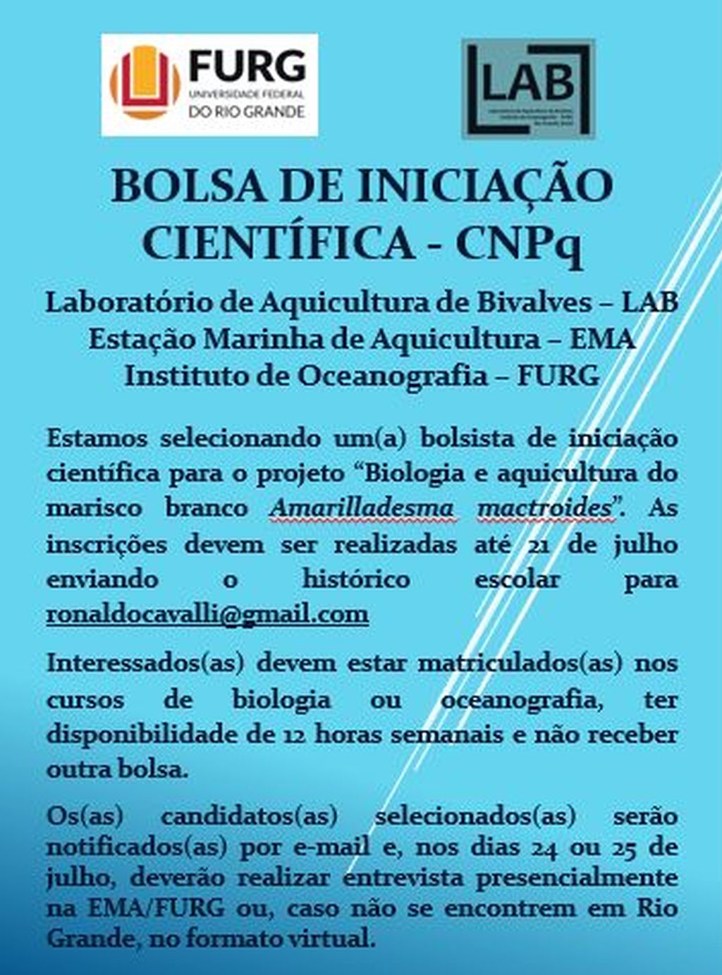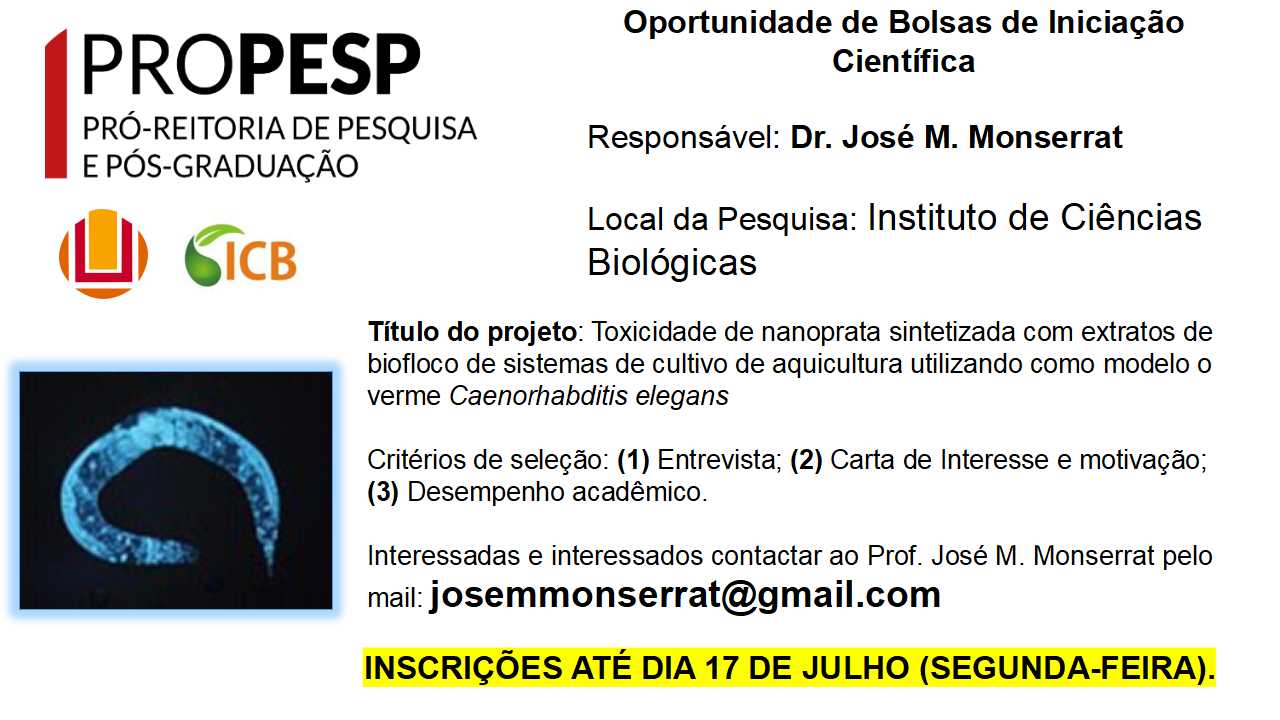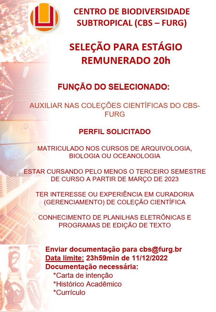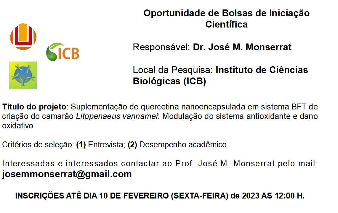 Maiores informações consulte o edital 08 – ICB de seleção na página da PROGRAD: https://prograd.furg.br/editais/em-andamento/edital-05-2024-bolsas-de-monitoria-academica