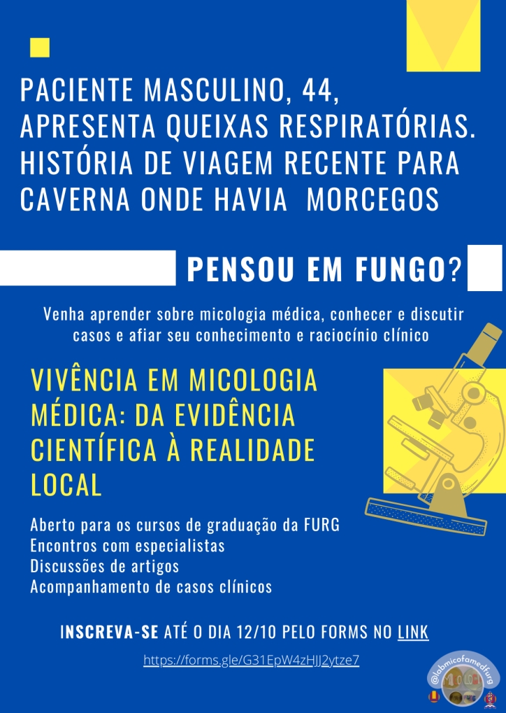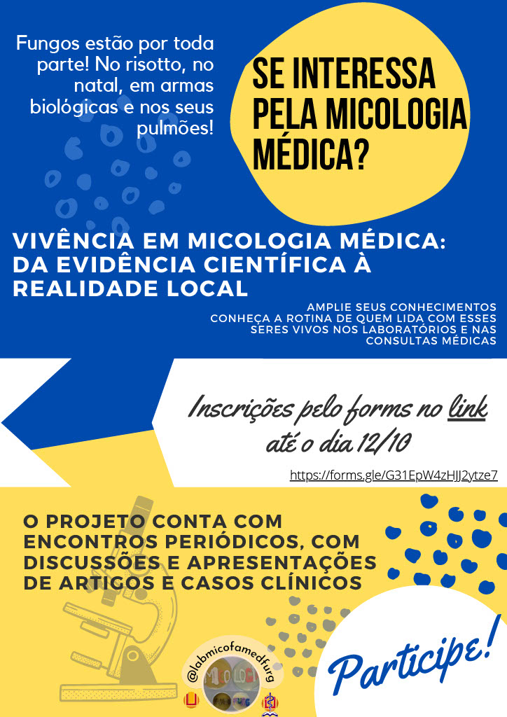 🍄 Vem participar com a gente do projeto Vivência em Micologia Médica: da evidência científica à realidade local, e ampliar seus conhecimentos em Micologia.